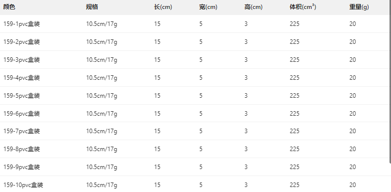 Item No.BHA0159 Length:105mm Weight:17g Action:suspending Hook:#3 hooks Color: 12 Package: PVC box blister box MOQ:100pcs each color and 300pcs mixed colors OEM&ODM is available