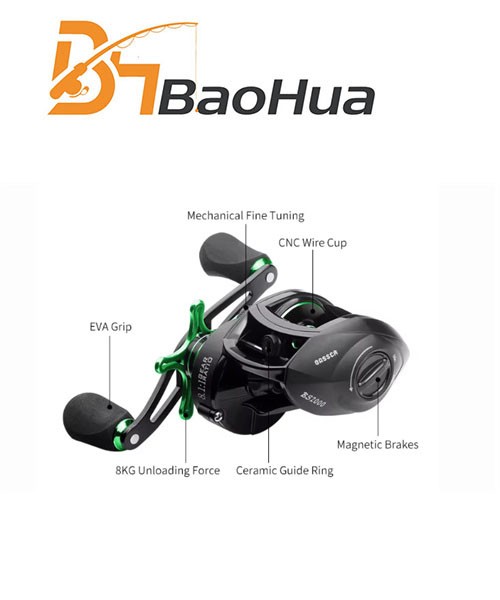 Weight: 203g Gear Ratio: 9.1:1 Fishing Reel Type: Baitcasting Reel Use Mode: Left/Right Hand Position : STREAM, River, Lake, Ocean Beach Fishing, Ocean Boat Fishing, Ocean Rock Fshing, Reservoir Pond, Other Bearing Quantity:19+1BB Line Capacity:0.33#/120m, 0.35#100M Color : Black with Green MOQ: 100 Pcs Package: Box Max Drag: 8kg Feature: prevent tangling system and high speed ratio 9.1:1 and 10-level magnetic braking