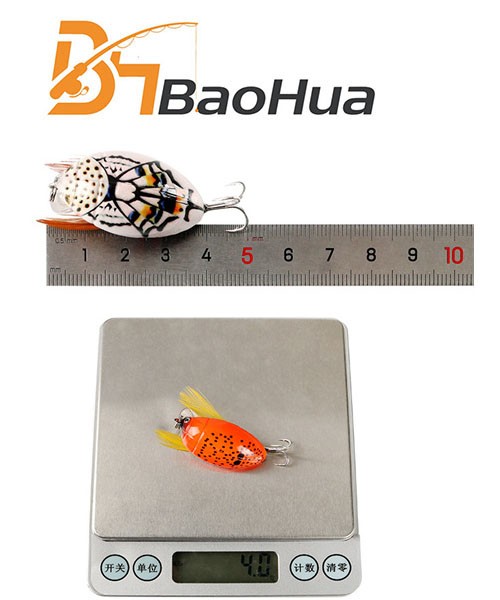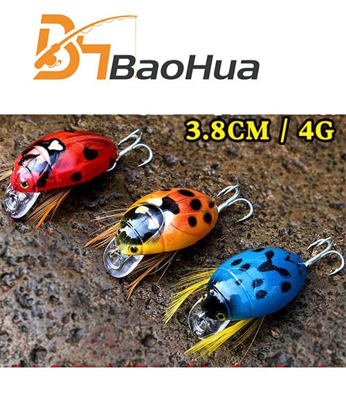 Wholesale BHA0198 3.8cm 4g Artificial Hard Plastic Insect Baits Top Water Floating Beetle Bug Shape Fishing Lures