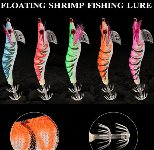 Newup Wholesale 2#2.5#3# Luminous Squid Jig Hook 8.5CM 7.3G 12CM 14.5G Wholesale Saltwater Sinking Lure Plastics Sea Fishing Wood Shrimp Squid Jig