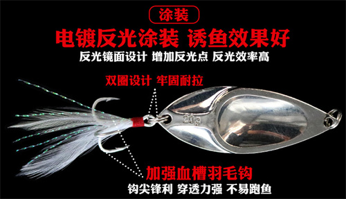 Item No.BHJSE002 Material: Zin alloy Weight:10g 15g 20g Action:all Hook:# blood groove 3 hook Color: 2 Package:PVC zipped poly bag MOQ: 200 each color OEM&ODM is available
