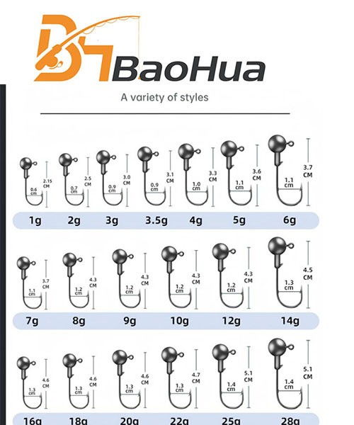Item No:BH lead Jig head1g-28g Length: 0.6cm-1.4cm Weight:1g-28g Action:all Color: silk Package:PVC zipped poly bag MOQ: 500 each color OEM&ODM is available