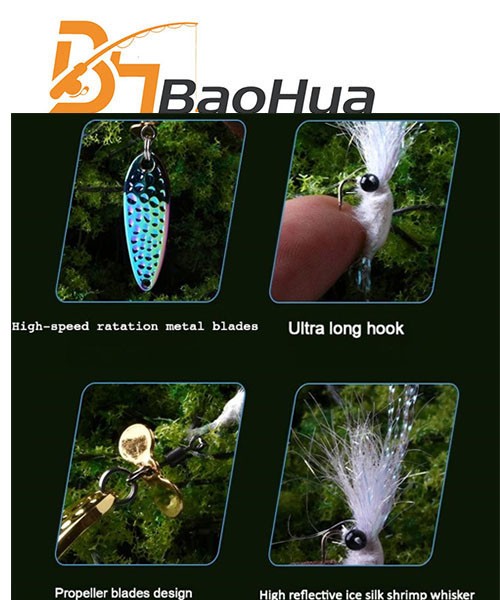 The metal lure will be rotated quickly when drag the rubber skirts in order to attract the fish’s attention