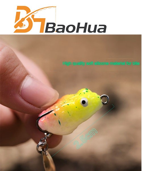 Item No.BHA0253 Size:2.5cm or 3cm Weight: 4g or 5g Soft frog lure Color: 16 Package: Plastic box MOQ: 150pcs each color and 300pcs mixed color OEM&ODM is available